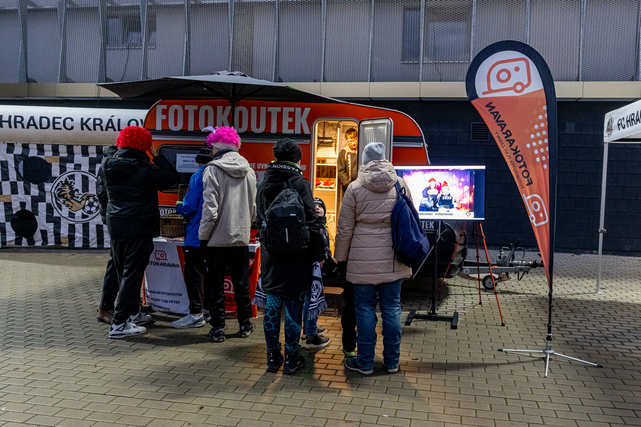 V adventním čase měli fanoušci po dobu tří hodin možnost fotit se zcela zdarma. O fotokaravan byl velký zájem a fotky jsme okamžitě tiskli přímo na místě, takže si každý mohl odnést tištěnou vzpomínku na fotbalový den. Atmosféra byla skvělá a fanzóna žila fotkami i úsměvy po celou dobu akce. ⚽📸